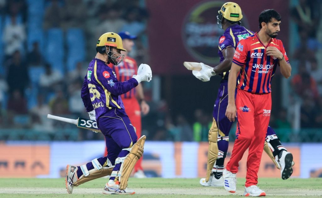 सुपर ओवर में लखनऊ की टीम कोलकाता की घातक गेंदबाजी के सामने संघर्ष करती नजर आई और टीम ने सिर्फ 1 रन पर 2 विकेट गंवा दिए। कोलकाता की ओर से सुनील नरेन ने शानदार गेंदबाजी करते हुए LSG को दबाव में रखा और टीम ने KKR को जीत के लिए 2 रनों का लक्ष्य दिया। इसके बाद मिले आसान लक्ष्य का पीछा करते हुए रिंकू सिंह ने पहली ही गेंद पर चौका लगाकर KKR को जीत दिला दी।