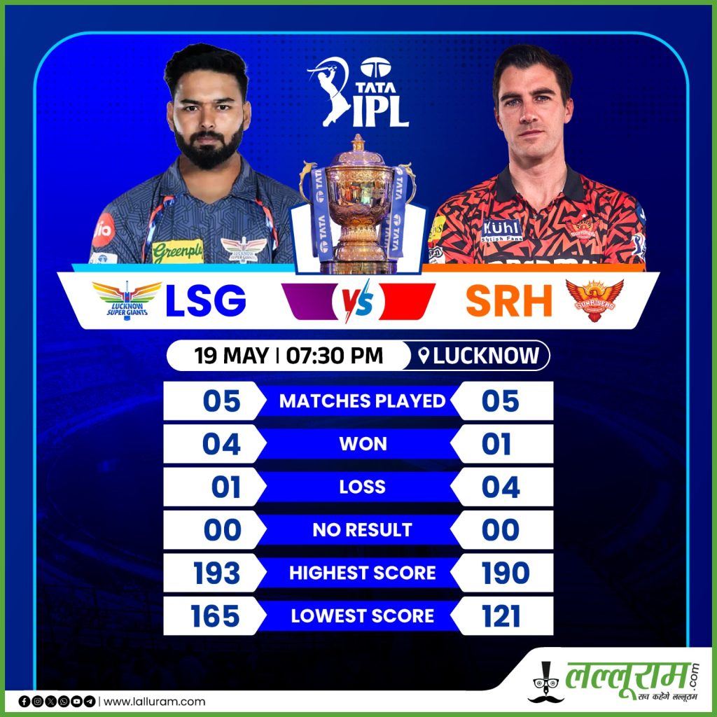 लखनऊ सुपर जायंट्स और सनराइजर्स हैदराबाद के बीच अब तक सिर्फ 5 मुकाबले खेले गए हैं, जिसमें LSG का पलड़ा भारी रहा है। लखनऊ की टीम ने 5 में से 4 मैच अपने नाम किए हैं, जबकि सनराइजर्स हैदराबाद की टीम को सिर्फ 1 बार जीत नसीब हुई है। लखनऊ में सिर्फ एक बार ही दोनों टीमों का आमना-सामना हुआ है, जिसमें मेजबान LSG ने 5 विकेट से जीत दर्ज की थी।
