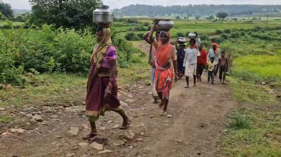 एक बरसाती नाला जहां खेतों से पानी आता है। उस पानी को एक पत्ते के सहारे ग्रामीण भरते हैं। ग्रामीणों का कहना है कि बारिश के दिन यह बरसाती नाला ही उनकी प्यास बुझाता है। जबकि गांव में दो तीन हैंडपंप हैं लेकन वो बंद पड़े हैं। यहां रहने वाले बैगा जनजाति के ग्रामीणों का कहना है कि कई बार मामले की जानकारी जिम्मेदारों को दी गई, मगर किसी ने उनकी सुध नहीं ली।