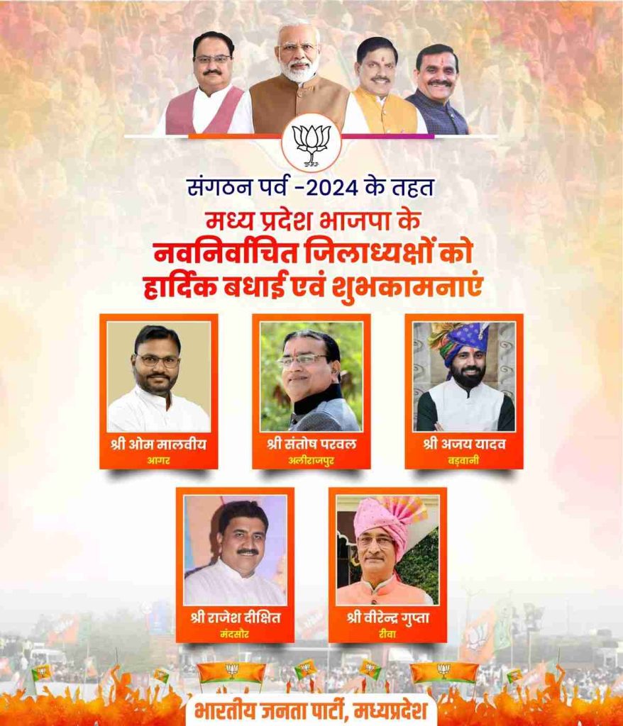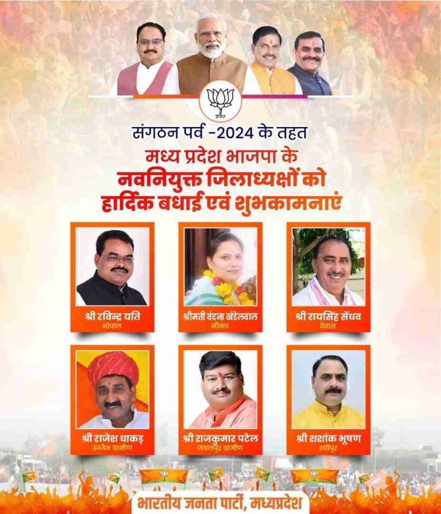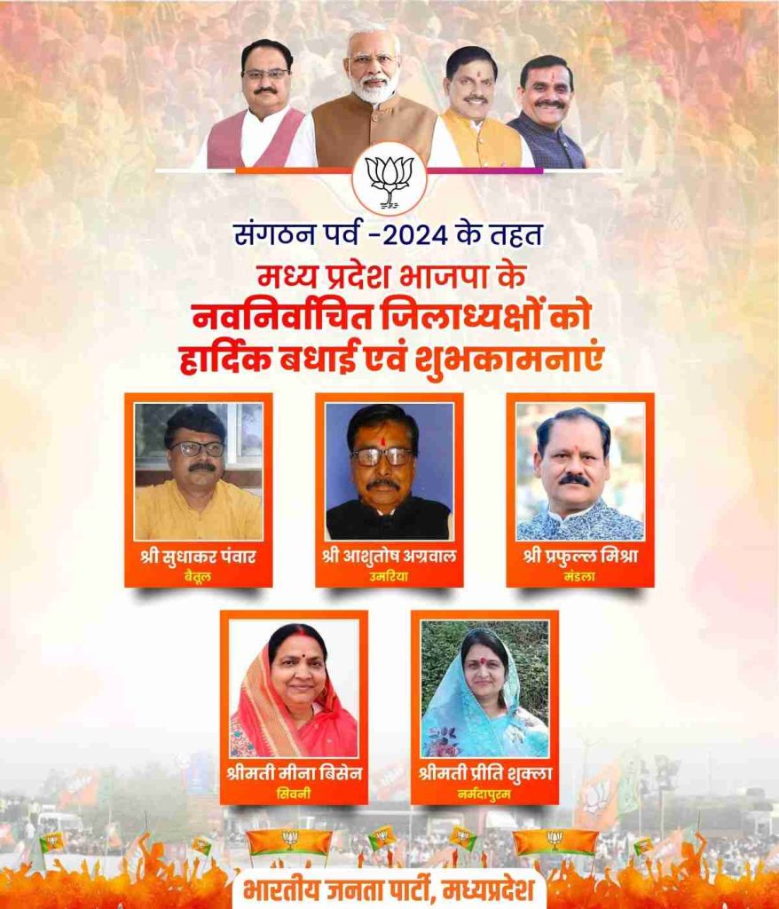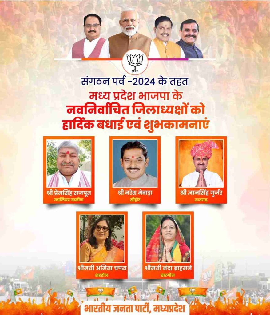 बता दें कि सरोज राजपूत पांचवी महिला अध्यक्ष हैं, जिन्हें किसी जिले की जिम्मेदारी सौंपी गई है। उनसे पहले चार जिलों में महिलाओं के नाम का ऐलान किया जा चुका है। उनसे पहले शहडोल से अमिता चपरा, खरगोन से नंदा ब्राहमने,सिवनी से मीना बिसेन और नर्मदापुरम से प्रीति शुक्ला का नाम की घोषणा की जा चुकी है।