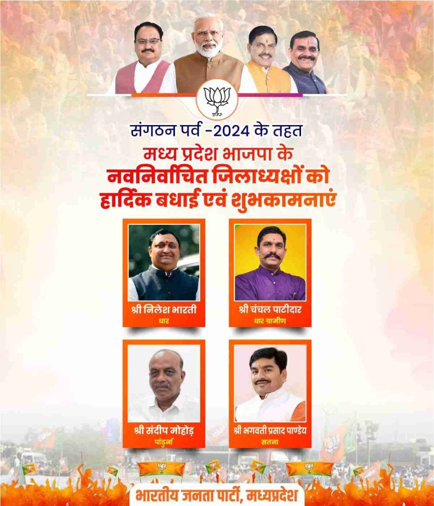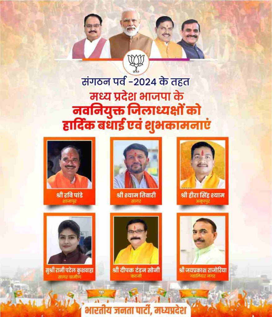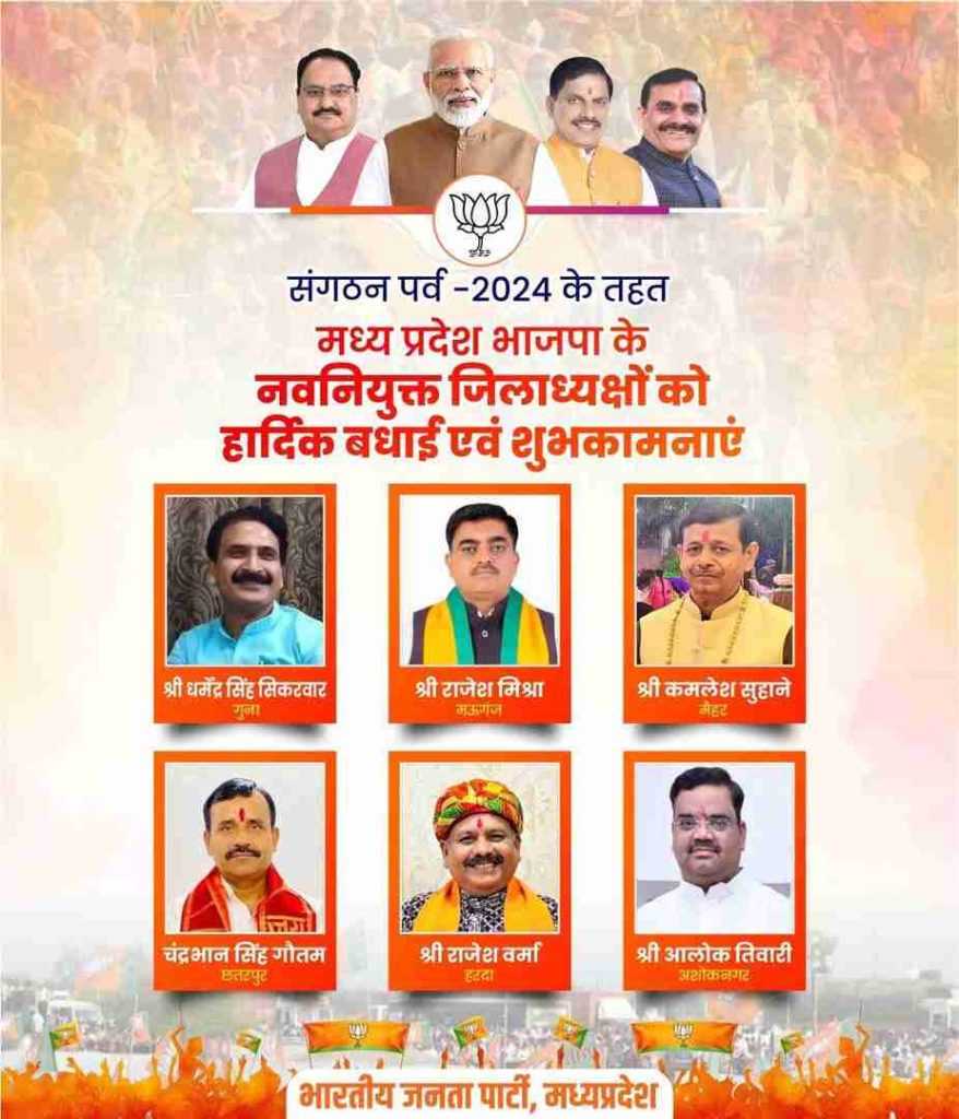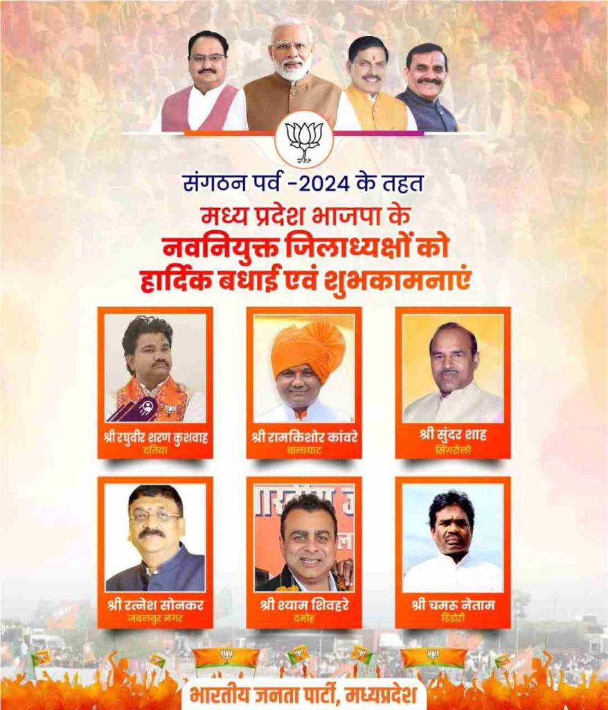 बता दें कि सरोज राजपूत पांचवी महिला अध्यक्ष हैं, जिन्हें किसी जिले की जिम्मेदारी सौंपी गई है। उनसे पहले चार जिलों में महिलाओं के नाम का ऐलान किया जा चुका है। उनसे पहले शहडोल से अमिता चपरा, खरगोन से नंदा ब्राहमने,सिवनी से मीना बिसेन और नर्मदापुरम से प्रीति शुक्ला का नाम की घोषणा की जा चुकी है।