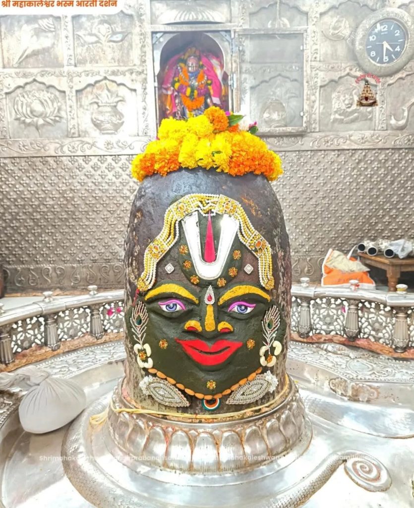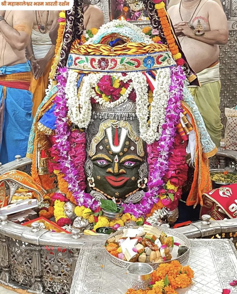 आज भगवान महाकाल का वैष्णव तिलक और मोर पंख से श्रृंगार किया गया। श्री महाकालेश्वर को भस्म चढ़ाई गई। साथ ही शेषनाग का रजत मुकुट, रजत की मुण्डमाल, रुद्राक्ष की माला के साथ सुगंधित पुष्प से बनी फूलों की माला धारण की। बाबा को फल और मिष्ठान का भोग लगाया गया। भोले बाबा का ड्रायफ्रूट से आकर्षक श्रृंगार किया गया।