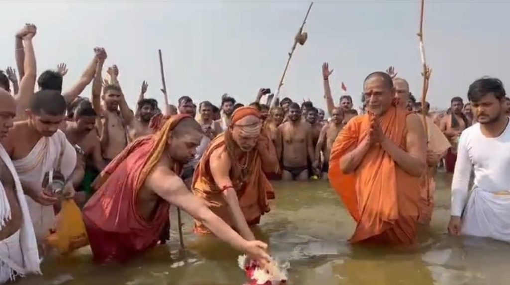 Mahakumbh 2025. प्रयागराज महाकुंभ में मौनी अमावस्या का अमृत स्नान (Mauni Amavasya Amrit Snan) का सिलसिला जारी है. महाकुंभ में श्रद्धालुओं का सैलाब उमड़ रहा है. अब तक 5.5 करोड़ से ज्यादा श्रद्धालु आस्था की डुबकी लगा चुके हैं. मौनी अमावस्या पर ज्योतिष्पीठाधीश्वर जगद्गुरु शंकराचार्य अविमुक्तेश्वरानंद, श्रृंगेरीपीठाधीश्वर जगद्गुरु शंकराचार्य स्वामी विधुशेखर भारती महाराज और द्वारकाशारदापीठाधीश्वर जगद्गुरु शङ्कराचार्य स्वामी सदानन्द सरस्वती महाराज ने एक साथ संगम में डुबकी लगाई.