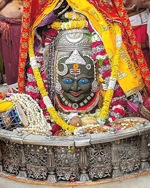 आज चैत्र नवरात्र के तीसरे दिन भगवान महाकाल का देवी स्वरूप में श्रृंगार किया गया। श्री महाकालेश्वर को भस्म चढ़ाई गई। साथ ही शेषनाग का रजत मुकुट, रजत की मुण्डमाल, रुद्राक्ष की माला के साथ सुगंधित पुष्प से बनी फूलों की माला धारण की। बाबा को फल और मिष्ठान का भोग लगाया गया। भोले बाबा के मस्तक पर चंद्र, मुकुट अर्पित कर आभूषणों से आकर्षक श्रृंगार किया गया।