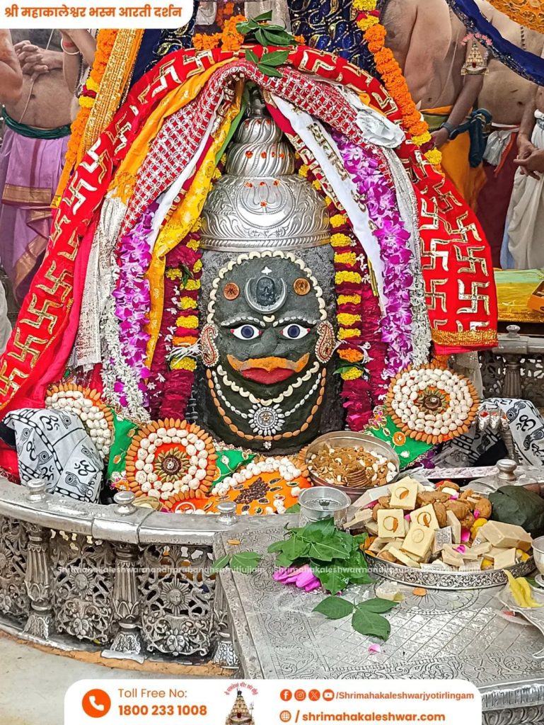 सावन के अंतिम सोमवार को भगवान महाकाल का दिव्य श्रृंगार किया गया। महाकाल के मस्तक पर चंद्र समेत एक और शिवलिंग दिखाई दिया। श्री महाकालेश्वर को भस्म चढ़ाई गई। साथ ही शेषनाग का रजत मुकुट, रजत की मुण्डमाल, रुद्राक्ष की माला के साथ सुगंधित पुष्प से बनी फूलों की माला धारण की। बाबा को फल और मिष्ठान का भोग लगाया गया। भोले बाबा का ड्रायफ्रूट से आकर्षक श्रृंगार किया गया।