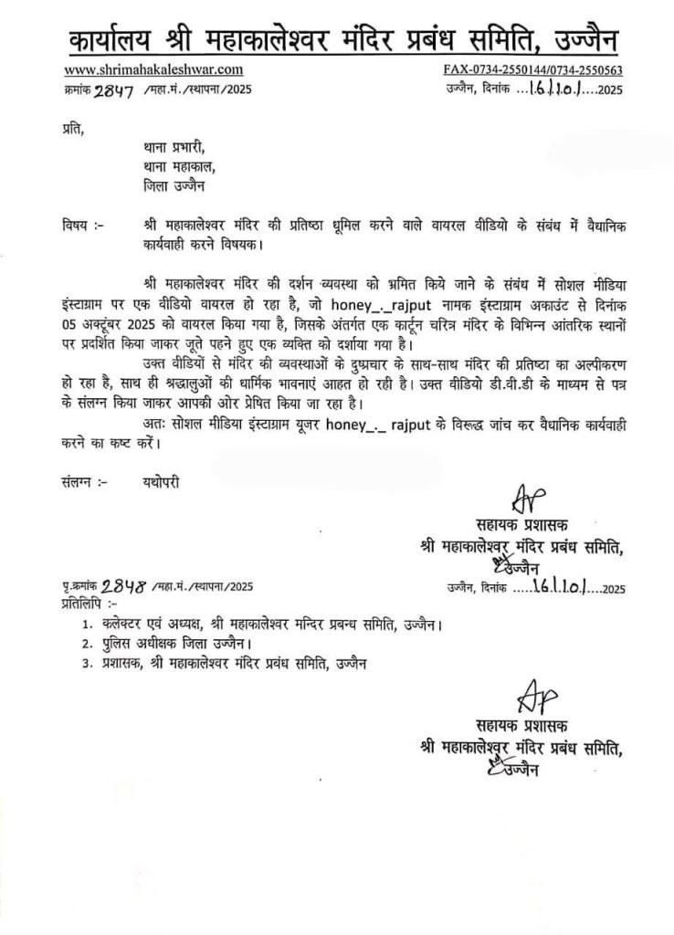 आपको बता दे इस पूरे वीडियो में उज्जैन के कई सारे दृश्य हैं जो की दिखाए गए हैं इनमें से काल भैरव मंदिर, शिप्रा नदी और उज्जैन के अन्य दृश्य भी है। वीडियो के वायरल होते ही महाकाल मंदिर प्रबंध समिति ने तत्काल एक्शन लिया। समिति ने इसे आस्था और मर्यादा का मज़ाक बताते हुए महाकाल थाना पुलिस को पत्र लिखकर यूज़र और वीडियो वायरल करने वालों के खिलाफ मामला दर्ज करने की मांग की है।