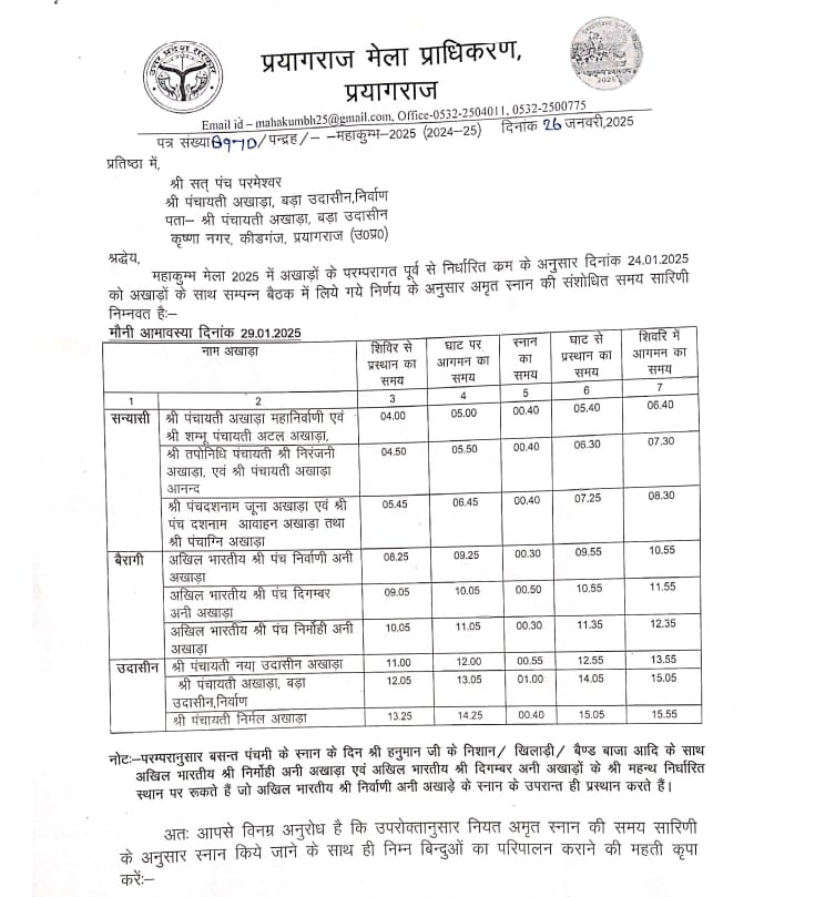 दूसरे अमृत स्नान के लिए शेड्यूल जारी