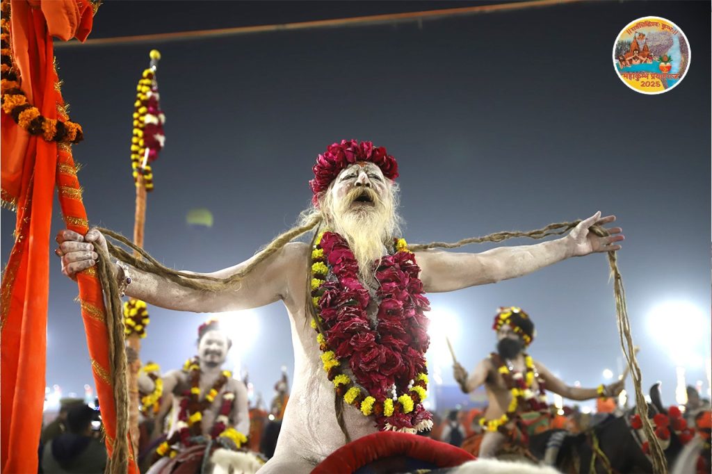 नागा साधु हाथों में तलवार, गदा, डमरू और शंख के साथ शरीर पर भभूत-भस्म और कई तो आंखों में स्टाइलिश चश्मा लगाए हुए नजर आए.