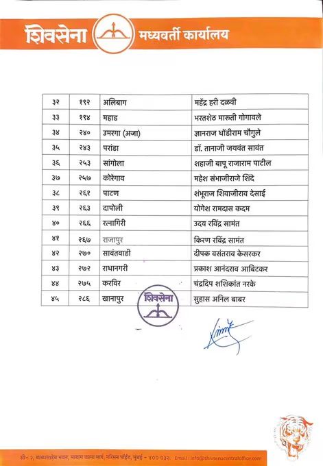 मंत्री उदय सामंत को रत्नागिरी से टिकट दिया गया है। वहीं एकनाथ शिंदे की पार्टी ने माहिम सीट से सदानंद शंकर सरवणकर को उम्मीदवार बनाया हैष इस सीट से मनसे अध्यक्ष राज ठाकरे के बेटे अमित ठाकरे चुनाव लड़ रहे हैं।