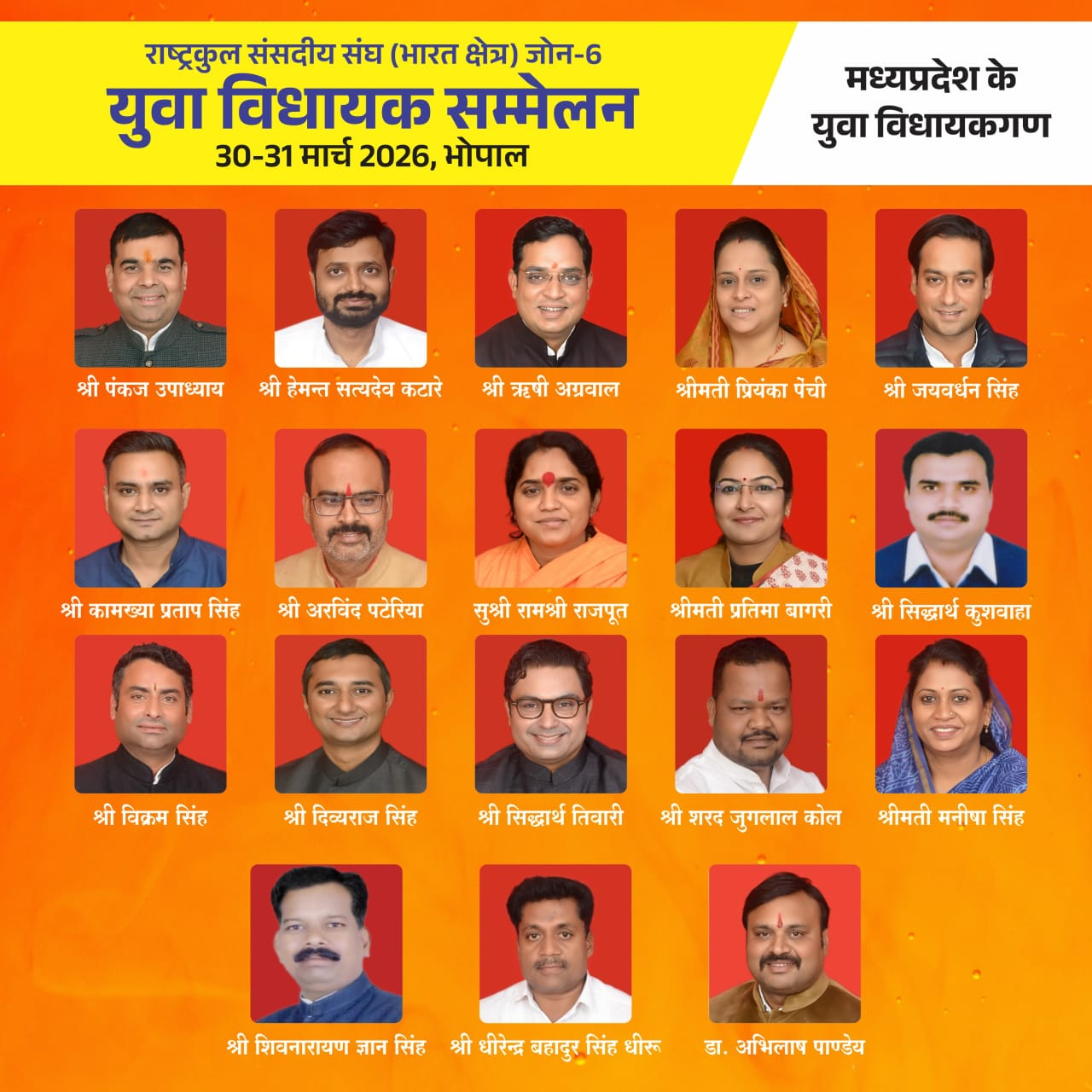 शब्बीर अहमद, भोपाल। मध्य प्रदेश विधानसभा की अनूठी पहल के तहत 30 और 31 मार्च 2026 को भोपाल में युवा विधायकों का विशेष सम्मेलन आयोजित किया जा रहा है। इस सम्मेलन में मध्य प्रदेश, राजस्थान और छत्तीसगढ़ के युवा विधायक हिस्सा लेंगे। मध्य प्रदेश से 18, छत्तीसगढ़ से 15 और राजस्थान से 22 युवा विधायक, कुल मिलाकर 55 से अधिक युवा जनप्रतिनिधि इस दो दिवसीय सम्मेलन में शामिल होंगे। सभी विधायकों की आयु 45 वर्ष से कम है।