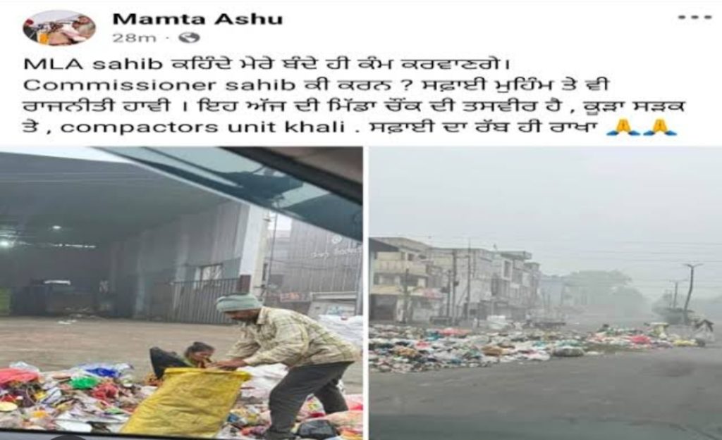 ममता आशू ने एक पोस्ट साझा की जिसमें उन्होंने स्थानीय विधायक गुरप्रीत गोगी की तस्वीर वाले एक पोस्टर को भी लगाया, जिसमें लिखा था, “आओ सारे मिलकर हल्का पच्छड़ी को सुंदर बनाएं।” ममता ने कहा कि शहर के कमिश्नर पर राजनीतिक दबाव डाला जा रहा है, जिसके कारण वे शहर में सही तरीके से काम नहीं कर पा रहे हैं। शहर में कूड़े के ढेर लगे हुए हैं और पूरे इलाके में गंदगी फैल रही है।