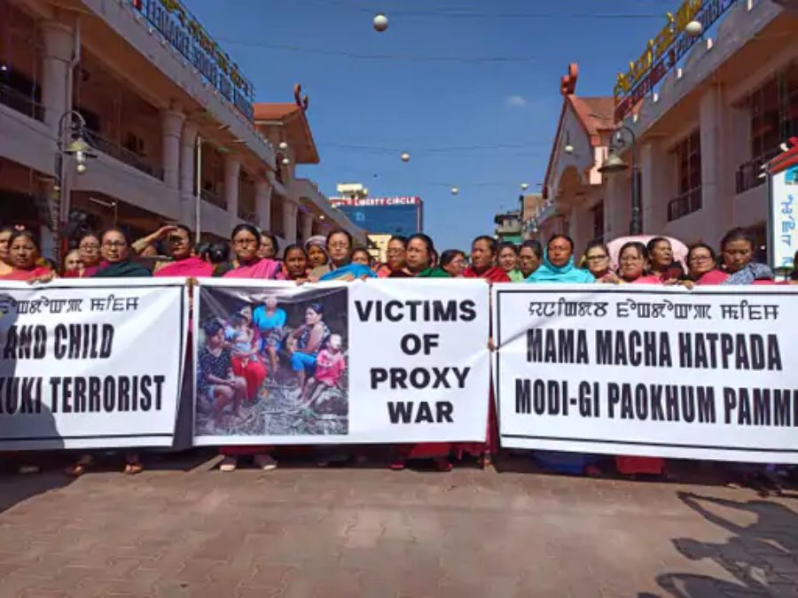 असम में कुकी उग्रवादियों के शवों को लेकर कुकी समुदाय का प्रदर्शन
