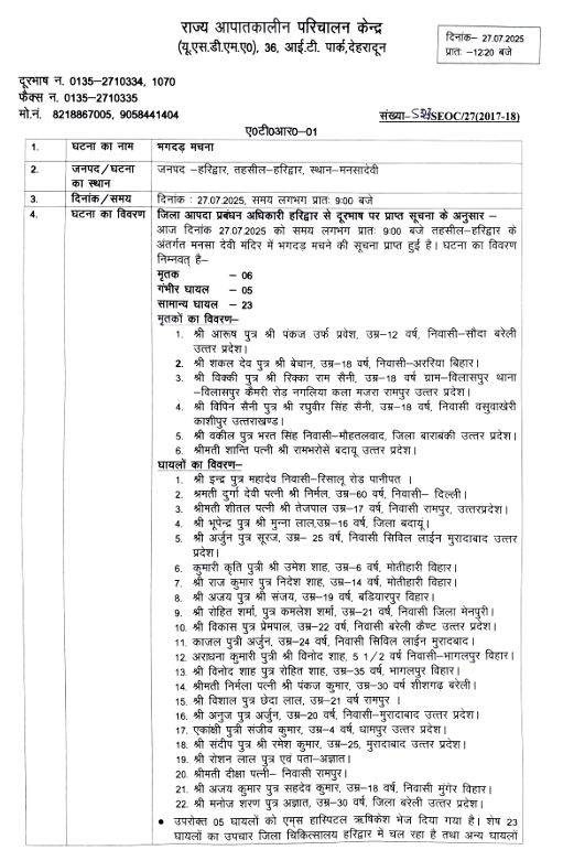 इसे भी पढ़ें : मनसा देवी मंदिर हादसा : घायलों से मिलने पहुंचे सीएम धामी, घटना की मजिस्ट्रियल जांच के दिए निर्देश