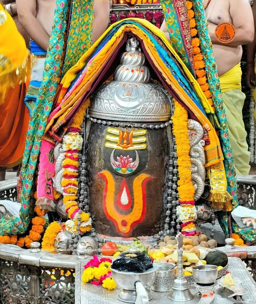 भगवान महाकाल का भांग चंदन और आभूषणों से श्रृंगार किया गया। भगवान महाकाल के मस्तक पर त्रिपुंड मोगरे के सुगंधित पुष्प अर्पित कर अर्धनारीश्वर के स्वरूप में श्रृंगार किया गया।भगवान महाकाल ने शेषनाग का रजत मुकुट, रजत की मुण्डमाल, रुद्राक्ष की माला के साथ सुगंधित पुष्प से बनी फूलों की माला धारण। फल और मिष्ठान का भोग लगाया।