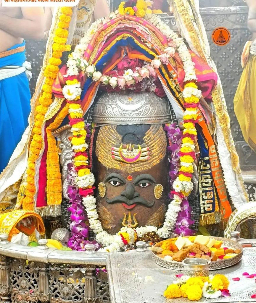 उज्जैन। Mahakal Bhasma Aarti: विश्व प्रसिद्ध श्री महाकालेश्वर मंदिर में चैत्र माह के शुक्ल पक्ष की पंचमी तिथि सोमवार तड़के 4 बजे मंदिर के कपाट खोले गए। भस्म आरती विशेष श्रृंगार के साथ संपन्न हुई। इस अवसर पर भगवान महाकाल का दिव्य श्रृंगार किया गया। मंदिर के पट खुलने के बाद पुजारियों ने गर्भगृह में स्थापित सभी देवी-देवताओं का पूजन कर भगवान महाकाल का जलाभिषेक किया। इसके बाद दूध, दही, घी, शहद, फलों के रस से बने पंचामृत से अभिषेक पूजन किया। भगवान महाकालेश्वर के मस्तक पर त्रिशूल, चंद्र और बेलपत्र अर्पित कर भव्य श्रृंगार किया गया।