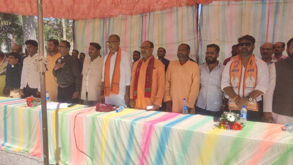 आज विश्व हिन्दू परिषद व गौ सेवकों की अगुवाई में विश्रामपुर में मसीह समाज के पदाधिकारियों के साथ समाज जनों ने बैठक की और सभी ने गौमाता की तस्करी रोकने, गौमांस व नशे के सामान की बिक्री कर अशांति का वातावरण फैलाने वाले आसामाजिक तत्वों के विरुद्ध कड़ी कार्रवाई कर प्रशासन को सहयोग देने का संकल्प लिया. इस अवसर पर गौ सेवक छत्तीसगढ़ प्रमुख ओमेश बिसेन, विश्व हिन्दू परिषद के जिलाध्यक्ष अभिषेक तिवारी, ईसाई समाज के नितिन लारेंस सहित बड़ी संख्या में समाज के पादरियों के साथ समाज के लोग उपस्थित थे.