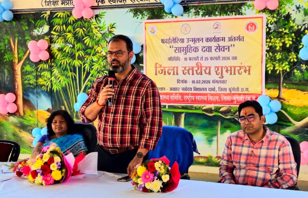 CG News : रोहित कश्यप, मुंगेली. प्रधानमंत्री नरेन्द्र मोदी की मंशानुरूप देश को 2030 तक फाइलेरिया (हाथी पांव) जैसी गंभीर बीमारी मुक्त बनाने के उद्देश्य से 25 फरवरी तक सामूहिक दवा सेवन कार्यक्रम आयोजित किया जा रहा है. अभियान अंतर्गत 02 वर्ष से कम आयु के बच्चों, गर्भवती महिलाओं एवं गंभीर रूप से बीमार व्यक्तियों को छोड़कर सभी नागरिकों को डी.ई.सी., एल्बेंडाजोल एवं आईवरमेक्टिन दवा का संयुक्त रूप से सेवन कराया जा रहा है. कलेक्टर कुन्दन कुमार ने जवाहर नवोदय विद्यालय दाबो पहुंचकर विद्यार्थियों को दवा सेवन कराया. उन्होंने बच्चों को 90 प्लस शिक्षा गुणवत्ता अभियान की जानकारी देते हुए बेहतर पढ़ाई कर परीक्षा में उत्कृष्ट प्रदर्शन करने प्रोत्साहित किया.