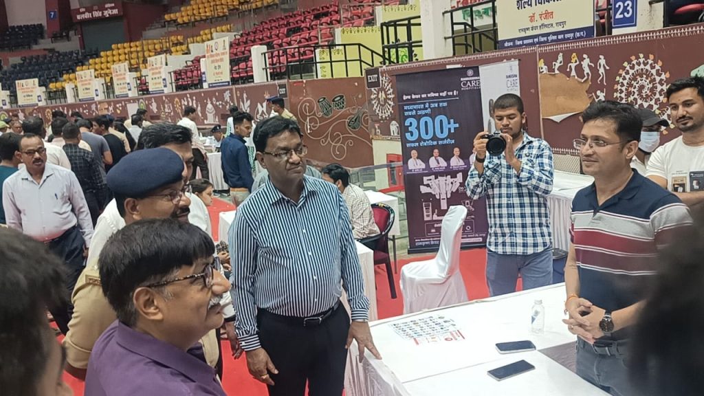नितिन नामदेव, रायपुर। पुलिस जवानों और उनके परिवारों की सेहत को ध्यान में रखते हुए रायपुर पुलिस और जिला प्रशासन की ओर से एक मेगा हेल्थ कैंप का आयोजन किया गया। छत्तीसगढ़ के पुलिस महानिदेशक (DGP) अरुण देव गौतम भी शिविर स्थल पहुंचे और स्वास्थ्य सुविधाओं का निरीक्षण किया।