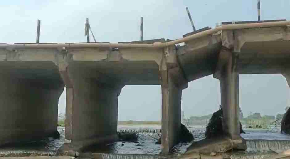 तीन पिल्लर गिरने से पुल में आई क्रेक