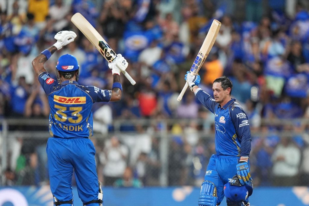 मुंबई इंडियंस: रायन रिकेल्टन (विकेटकीपर), क्विंटन डी कॉक, सूर्यकुमार यादव, तिलक वर्मा, हार्दिक पंड्या (कप्तान), शेरफेन रदरफोर्ड, नमन धीर, मयंक रावत, शार्दूल ठाकुर, दीपक चाहर और जसप्रीत बुमराह।