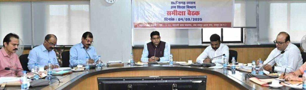 बैठक में उच्च शिक्षा सचिव डॉ. एस. भारतीदासन ने अवगत कराया कि सभी पाठ्यक्रम यूजीसी और राष्ट्रीय शिक्षा नीति के अनुरूप निर्धारित होंगे। कुलपतियों ने अपने-अपने विश्वविद्यालयों एवं संबद्ध कॉलेजों की स्थिति का प्रस्तुतीकरण भी दिया। इस अवसर पर प्रदेश के सभी शासकीय विश्वविद्यालयों के कुलपति और उच्च शिक्षा विभाग के वरिष्ठ अधिकारी उपस्थित रहे।