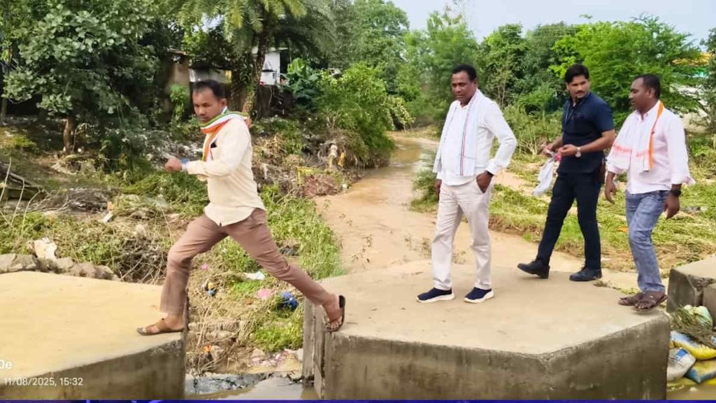 गरियाबंद। बरसाती नाला के पास मौजूद खेती जमीन पर लोग वर्षों पहले बसे थे. चेक डेम के पार बसाहट होने की वजह से नाम डेम पारा पड़ा था. आवाजाही की कोई स्थाई व्यवस्था नहीं होने की वजह से ग्रामीण बरसात में चेक डेम के पिल्लरों से कूद कर आवाजाही करते हैं. ऐसे में ग्रामीणों का हाल जानने डेम पारा पहुंचे विधायक जनक ध्रुव को भी पिल्लरों का सहारा लेना पड़ा. स्थिति को देखने के बाद उन्होंने प्रशासन के साथ मिलकर स्थाई समाधान निकालने का आश्वासन दिया है.