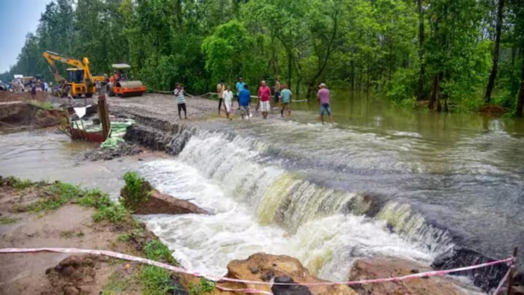 नागालैंड में बारिश से धंसी सड़क