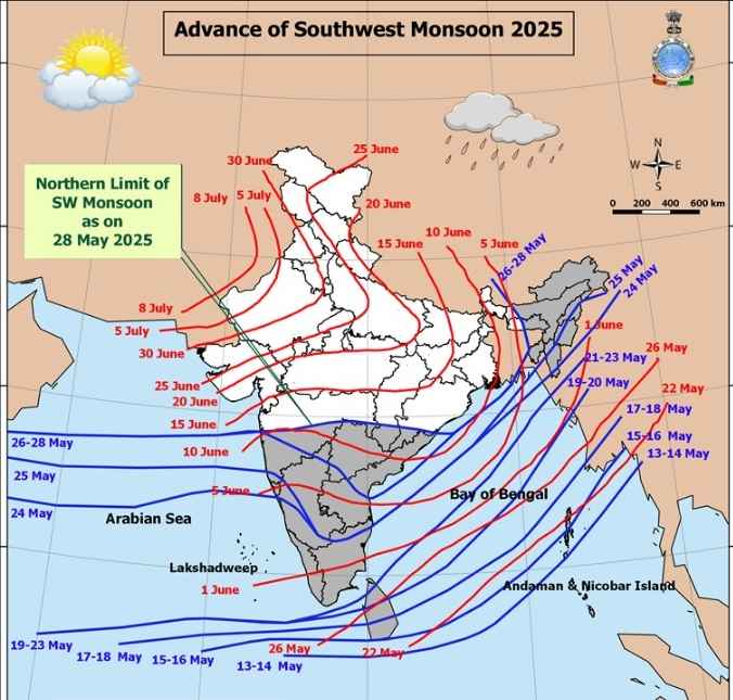 Monsoon enters Chhattisgarh : रायपुर। छत्तीसगढ़वासियों के लिए खुशखबरी है. पहली बार नौतपा में मानसून ने छत्तीसगढ़ में दस्तक दी है. मौसम विभाग के मुताबिक, (Monsoon enters Chhattisgarh) मानसून बस्तर पहुंच चुका है. कुछ दिनों बाद पूरे राज्य में सक्रिय हो जाएगा. इस बार 10 जून तक मानसून छत्तीसगढ़ पहुंचने का अनुमान लगाया गया था, लेकिन 13 दिन पहले 28 मई को ही बस्तर पहुंच गया. बता दें कि 2024 में 8 जून को बस्तर में मानसून पहुंचा था.