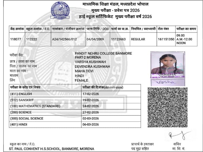 यह पूरा मामला मुरैना जिले के बानमोर स्थित पंडित नेहरू कॉलेज परीक्षा केंद्र का है। 10वीं की छात्रा वर्षा कुशवाह (16) मंगलवार को गणित का पेपर देने पहुंची थी। परीक्षा देते समय वह अचानक गिर पड़ी। यह देख क्लास में हड़कंप मच गया। आनन-फानन में वर्षा को अस्पताल ले जाया गया, लेकिन रास्ते में ही उसकी मौत हो गई। मृतिका ग्वालियर से मुरैना जिले के बानमौर परीक्षा केंद्र पर एग्जम देने पहुंची थी।