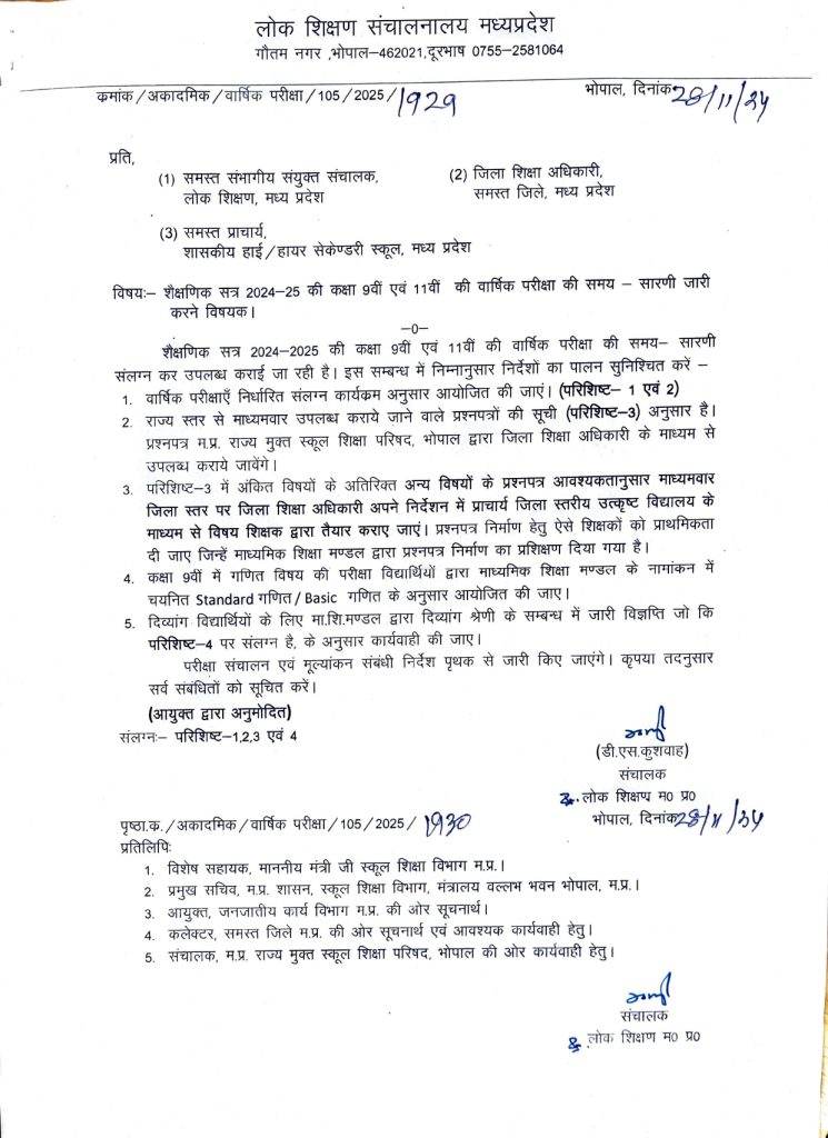 राकेश चतुर्वेदी, भोपाल। MP 9th-11th Exam Time Table 2024: मध्य प्रदेश में 9वीं और 11वीं कक्षा की वार्षिक परीक्षाओं की समय सारणी जारी हो गई है। लोक शिक्षण संचालनालय के टाइम टेबल के मुताबिक, 3 फरवरी से परीक्षाएं शुरू हो जाएंगी जो 22 फरवरी तक चलेंगी। 3 फरवरी से 11वीं की परीक्षाएं आयोजित होंगी और 5 फरवरी से 9वीं की परीक्षा शुरू होगी।