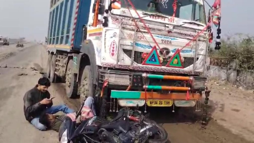 धर्मेंद्र ओझा, भिंड। देहात थाना क्षेत्र के विवेकानंद हॉस्पिटल के पास ट्रक की टक्कर से बाइक सवार युवक की मौत हो गई. दरअसल, 19 वर्षीय नरेश नरवरिया किसी काम ने भिंड आया था और अपने गांव पुर लौट रहा था, तभी विवेकानंद हॉस्पिटल के पास ट्रक ने बाइक सवार युवक टक्कर मार दी. इस हादसे में युवक की घटनास्थल पर ही मौत हो गई. जब पुलिस ने शव का पीएम कर परिजनों को सौंपा तो उन्होंने घटनास्थल के पास लाश रखकर जाम लगा दिया. पुलिस के समझाइश के बाद परिजनों ने जाम खोला. फिलहाल, पुलिस ट्रक ड्राइवर की तलाश में जुटी हुई है.