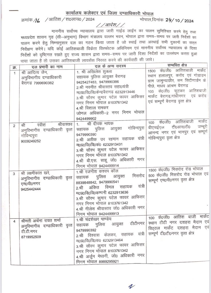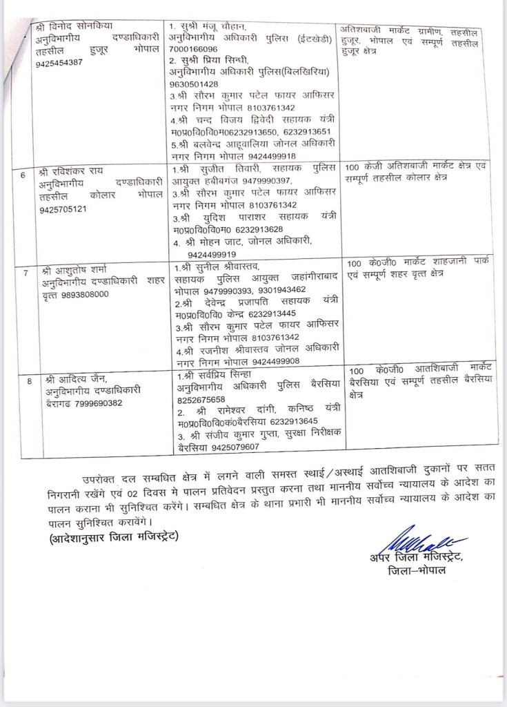 इस दल में पुलिस, नगर निगम और विद्युत वितरण कंपनी के अधिकारियों को शामिल किया गया है। बैरागढ़ एसडीएम आदित्य जैन को बैरागढ़ और बैरसिया वृत्त की जिम्मेदारी दी गई है। SDM रवि श्रीवास्तव गोविंदपुर, SDM लक्ष्मीकांत खरे एमपी नगर, SDM अर्चना शर्मा टीटीनगर, SDM विनोद सोनकिया हुजूर, SDM रविशंकर राय कोलार, SDM आशुतोष शर्मा शहर वृत्त की निगरानी करेंगे।