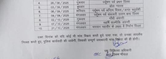 ये भी पढ़ें: राजधानी में कल बंद रहेंगी चिकन-मटन शॉप: दुकान खोलने पर लगेगा 10 हजार का जुर्माना, इन तारीखों पर भी बिक्री पर रहेगी रोक