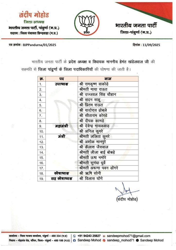 छिंदवाड़ा और पांढुर्णा, दोनों ही जिले कांग्रेस के वरिष्ठ नेता कमलनाथ का गढ़ माने जाते हैं। बीजेपी ने इन जिलों में अपनी संगठनात्मक ताकत को बढ़ाने के लिए रणनीतिक रूप से कार्यकारिणी का गठन किया है।