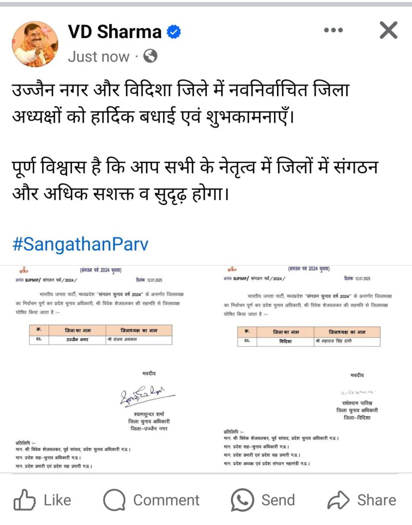 MP BREAKING: उज्जैन में सबसे पहले जिला अध्यक्ष की घोषणा, CM डॉ. मोहन के इस करीबी नेता को मिला पद