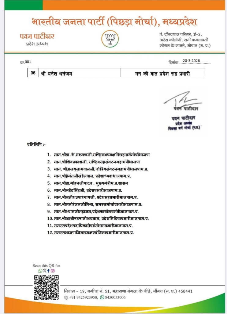 पिछड़ा वर्ग मोर्चा के प्रदेश पदाधिकारियों की भी घोषणा