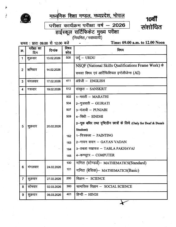 10वीं परीक्षा का टाइम टेबल यहां देखें