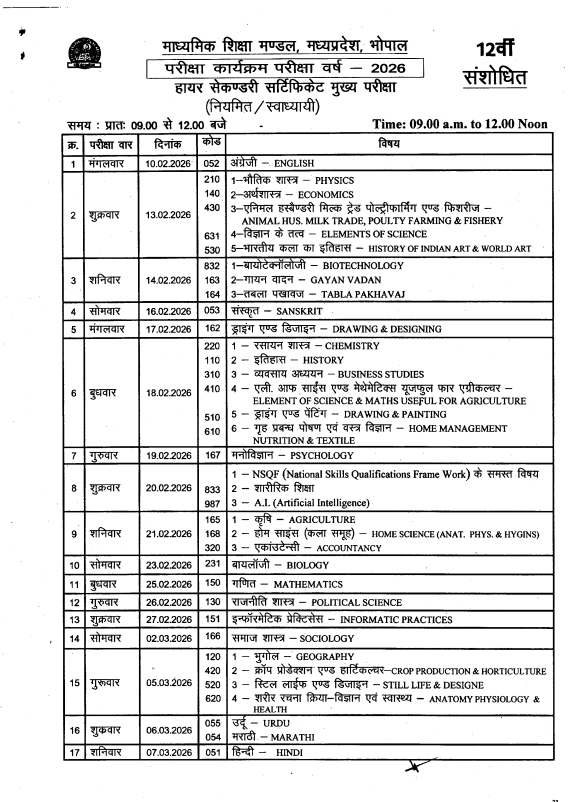 12वीं परीक्षा का टाइम टेबल यहां देखें