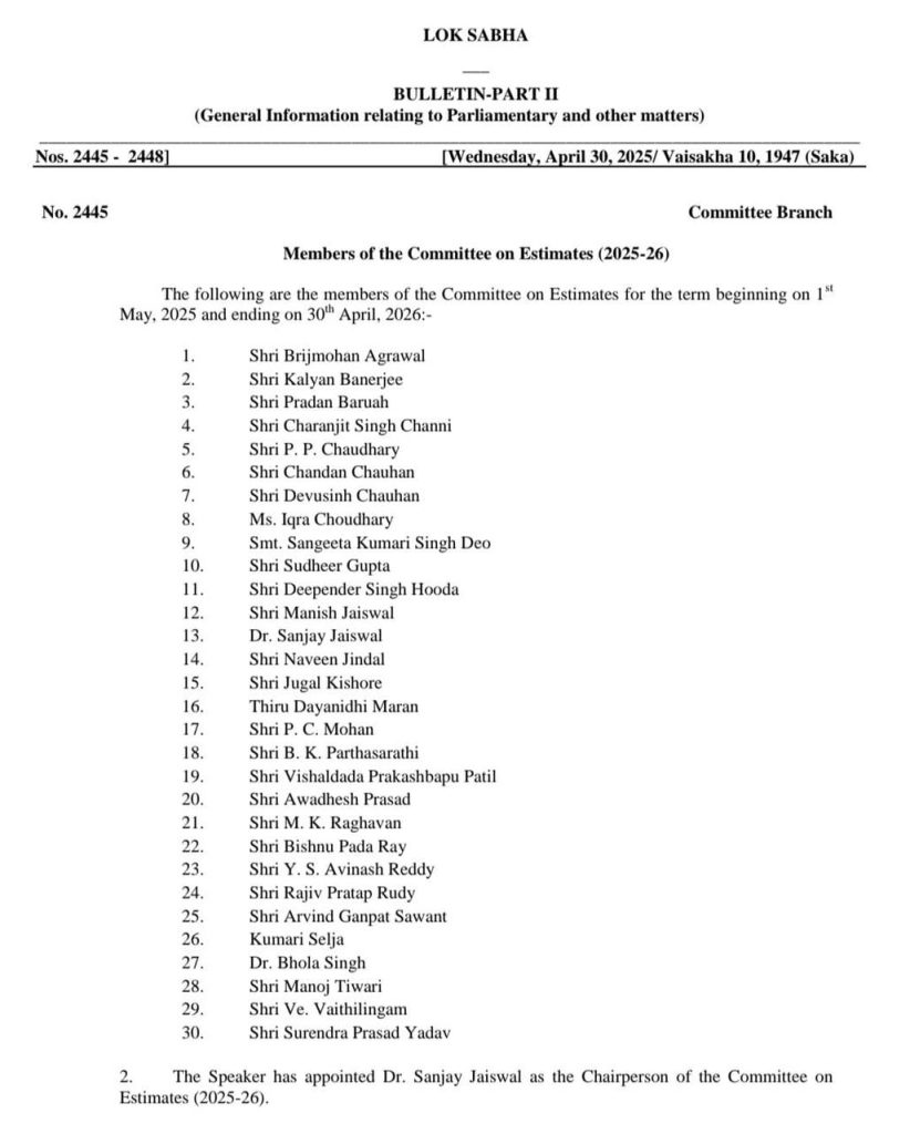 प्राक्कलन समिति संसद की सबसे प्रभावशाली समितियों में से एक मानी जाती है। यह समिति विभिन्न मंत्रालयों और विभागों के बजट, खर्च और योजनाओं की समीक्षा कर पारदर्शिता और जवाबदेही सुनिश्चित करती है।