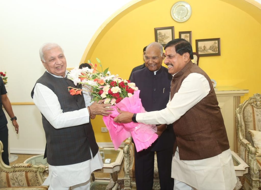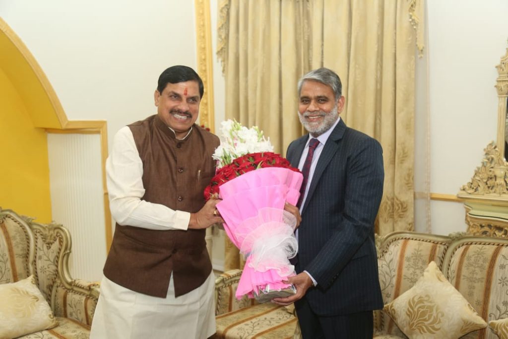 सीएम ने राज भवन में मध्य प्रदेश उच्च न्यायालय के मुख्य न्यायाधिपति सुरेश कुमार कैत से भेंट की और पुष्पगुच्छ से उनका स्वागत किया।