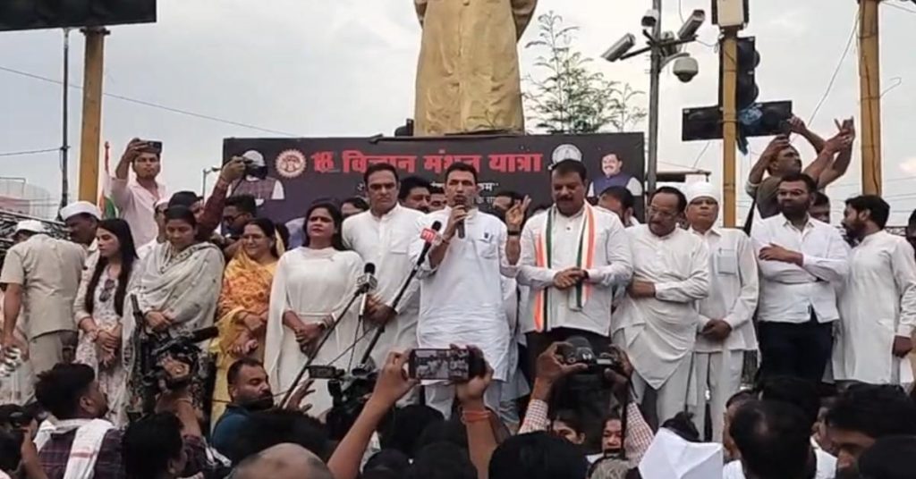 राजधानी भोपाल में पीसीसी चीफ जीतू पटवारी और नेता प्रतिपक्ष उमंग सिंघार के नेतृत्व में कांग्रेस कार्यकर्ताओं ने प्लेटिनम प्लाजा से रोशनपुरा चौराहे तक पैदल मार्च निकाला। जिसमें पूर्व मंत्री पीसी शर्मा, महिला कांग्रेस की प्रदेश अध्यक्ष रीना बौरासी सेतिया समेत बड़ी संख्या में कार्यकर्ता शामिल हुए।