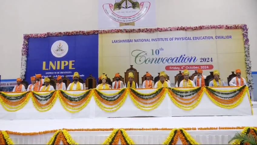 कर्ण मिश्रा, ग्वालियर। मध्य प्रदेश के ग्वालियर में एशिया के सबसे बड़े खेल संस्थान LNIPE का दसवां दीक्षांत समारोह आयोजित हुआ। जिसमें केंद्रीय खेल मंत्री डॉ मनसुख मांडविया शामिल हुए। केंद्रीय मंत्री ने 320 छात्रों को उपाधि प्रदान की। साथ ही बीपीएड और एमपीएड कोर्स के होनहार स्टूडेंट्स को गोल्ड दिए।