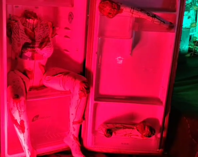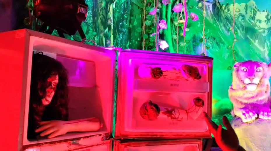 साथ ही लव जिहाद को लेकर सत्य घटनाओं पर आधारित हत्या को जीवंत स्वरूप दिखाया गया। यहां फ्रिज में कटी हुई लड़कियों के लाश के टुकड़े प्रतीकात्मक रूप से दिखाए गए हैं। साथ ही सूटकेस में भी लाश दिखाकर यह संदेश दिया गया कि ‘अपने धर्म से प्रेम करें। ताकि आपको दिल में जगह मिले फ्रिज में नहीं।’