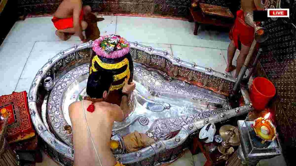 अजय नीमा, उज्जैन। विश्व प्रसिद्ध श्री महाकालेश्वर मंदिर में भाद्रपद माह शुक्ल पक्ष की त्रयोदशी तिथि दिन शुक्रवार को अलसुबह मंदिर के कपाट खोले गए। भगवान महाकाल का सबसे पहले जल से अभिषेक किया गया। इसके बाद दूध, दही, घी, शहद, फलों के रस से बने पंचामृत से अभिषेक पूजन किया।