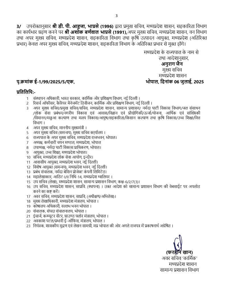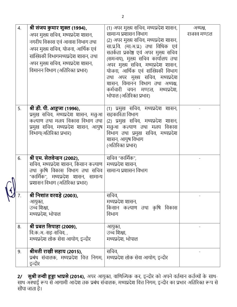 इसी के साथ राखी सहाय को MPPSC सचिव नियुक्त किया गया है। वहीं प्रबल सिपाहा को उच्च शिक्षा आयुक्त की जिम्मेदारी दी गई तो दूसरी ओर निशांत नरवड़े कृषि विभाग के सचिव बनाए गए हैं। सामान्य प्रशासन विभाग की ओर से इसे लेकर आदेश जारी कर दिया गया है।