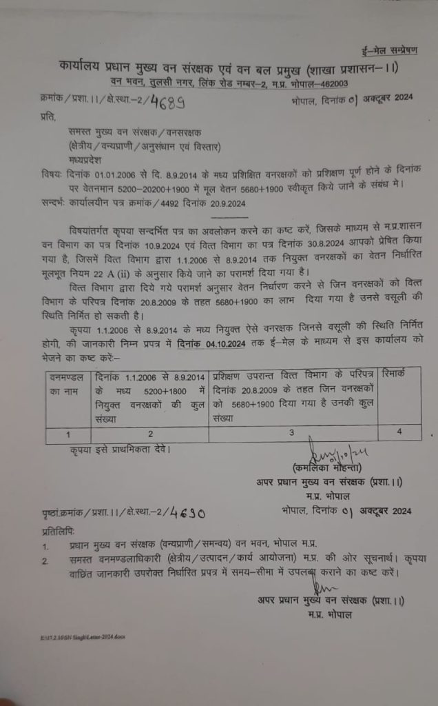 शब्बीर अहमद, भोपाल। मध्य प्रदेश के वन रक्षकों से वसूली करने के आदेश की वजह से सरकार की काफी किरकिरी हुई। विवाद बढ़ने के बाद अब वेतन वसूलने के आदेश पर रिव्यू करने का फैसला किया है। सभी डिवीजन से जानकारी बुलाने के निर्देश दिए गए हैं। सभी को 3 दिन के भीतर विभाग को जानकारी देना होगा।