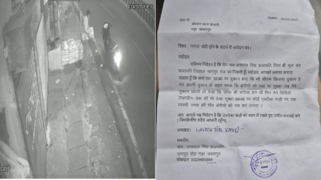 कुमार इंदर, जबलपुर। शहर में रसगुल्ला चोरी की घटना के बाद अब नमक चोरी का मामला सामने आया है। देवताल निवासी जयपाल सिंह प्रजापति ने गढ़ा थाने में शिकायत की है कि उसकी दुकान से एक युवक ने नमक की बोरी चुराई है। चोरी की वारदात सीसीटीवी कैमरे में कैद हो गई है।