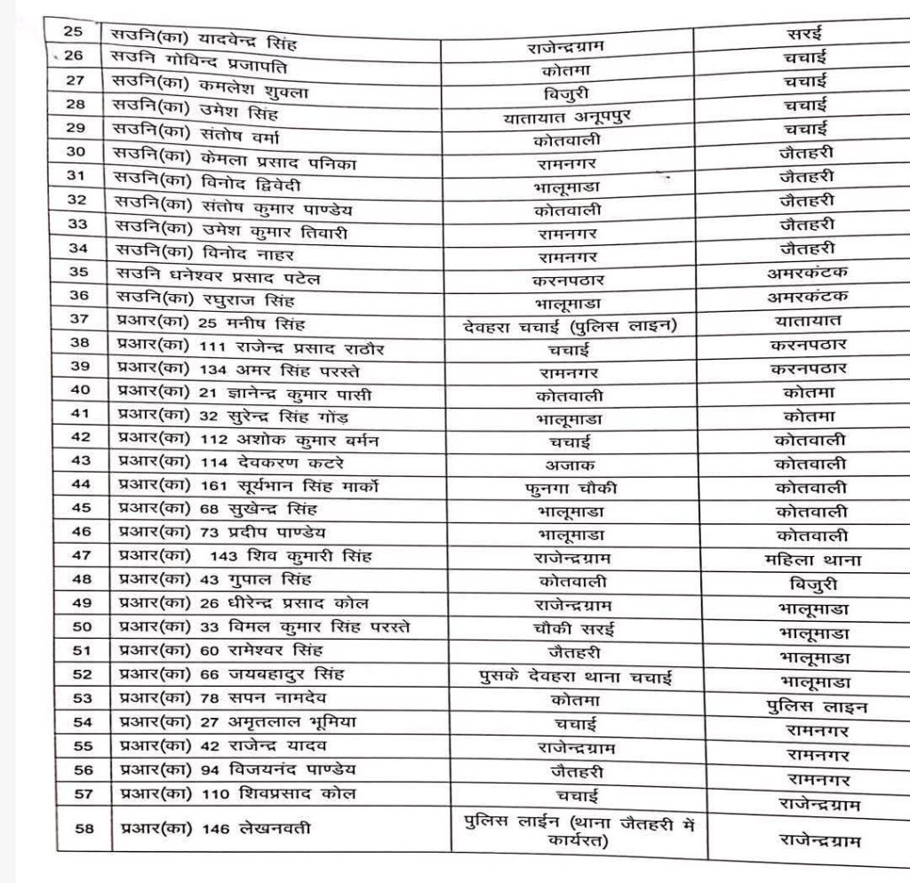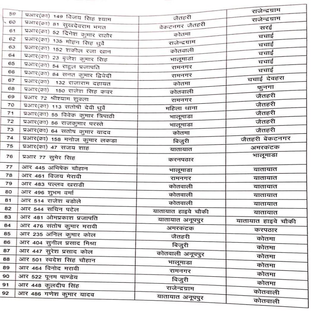 इस तबादला सूची में 3 उप निरीक्षक (SI), 33 सहायक उप निरीक्षक (ASI), 40 प्रधान आरक्षक और 36 आरक्षक शामिल हैं. सभी को अस्थायी रूप से जिले के अन्य थानों और चौकियों में भेजा गया है. यह कदम प्रभारी मंत्री के परामर्श और विभागीय नियमों के अनुरूप पारदर्शिता और निष्पक्षता सुनिश्चित करने के उद्देश्य से उठाया गया है.