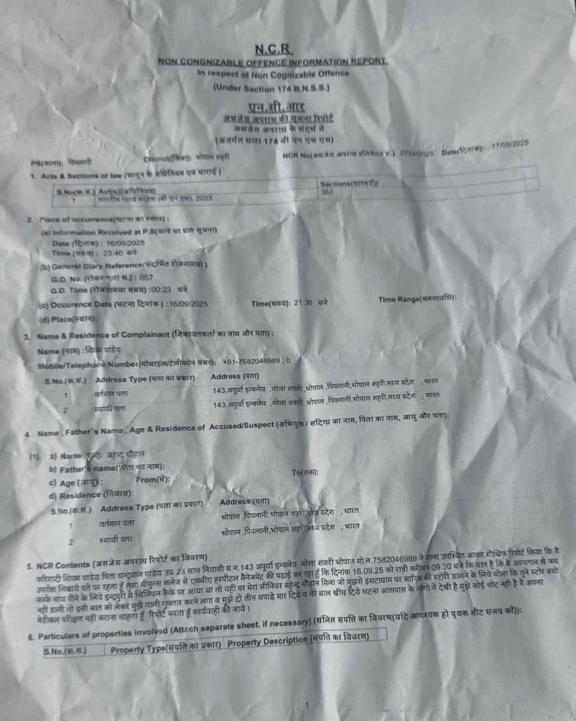शब्बीर अहमद, भोपाल। मध्यप्रदेश की राजधानी भोपाल ड्रग्स और यौन शोषण के आरोपी शारिक मछली के गुर्गों का आंतक जारी है। शारिक की स्टोरी इंस्टाग्राम पर नहीं लगाने के चलते शिवम नाम के लड़के की पिटाई कर दी। शारिक के गुर्गे महेंद्र चौहान ने की शिवम की पिटाई कर दी। शिवम ने महेंद्र के खिलाफ FIR दर्ज कराई है।