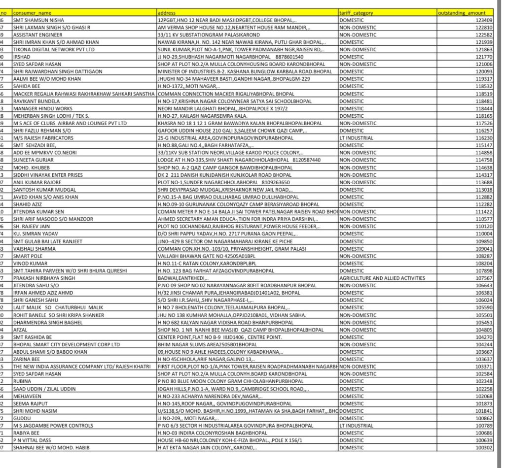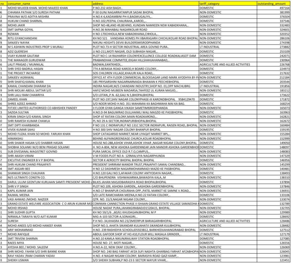 शहर के बिल्डर, निजी कंपनियों के संचालक ने भी लंबे समय से एक लाख से अधिक का बिल जमा नहीं किया है। भोपाल स्मार्ट सिटी कार्यालय का भी लाखों का बिल बकाया है।